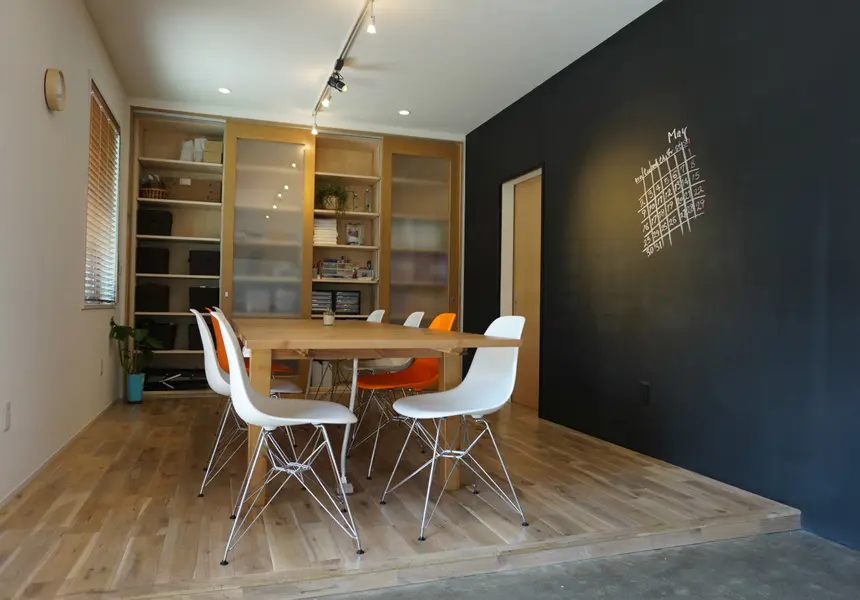 壁一面の黒板塗装には手書きのカレンダー。書き方が素敵です!