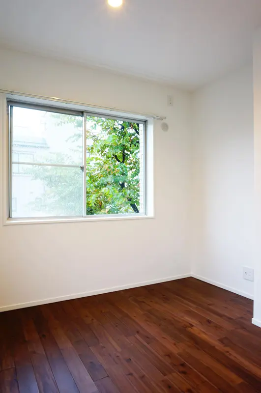 ※床はアカシアの無垢塗装フローリング。無垢の木の色ムラが美しい。