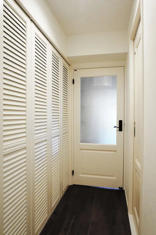 ※建具は白い装飾框扉やルーバー折戸。