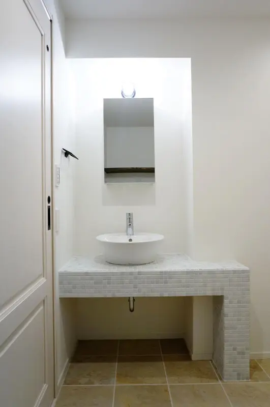 ※洗面室の床・洗面台のタイルは明るいものを選定。