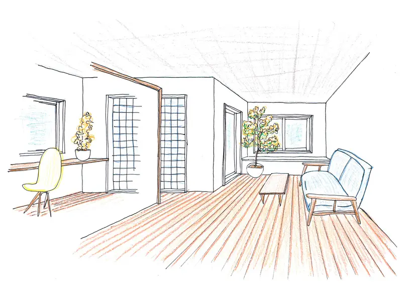 木肌の素材感を活かしたナチュラルな雰囲気の内装をイメージしていました。