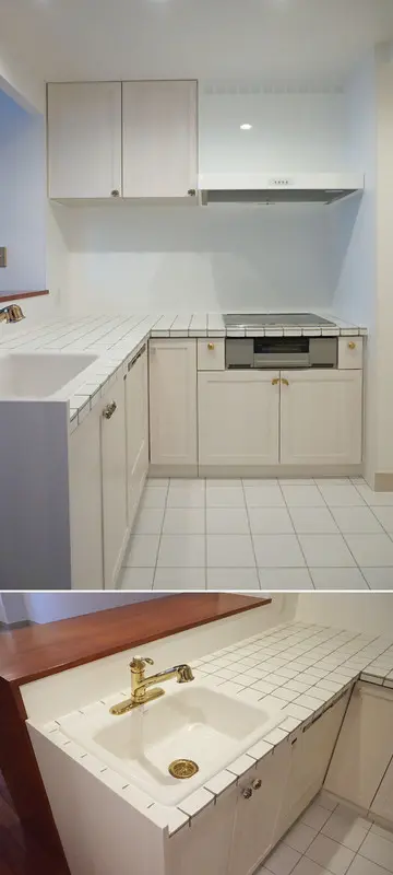 ※キッチンは白とゴールドでコーディネート。明るく可愛らしいキッチン。