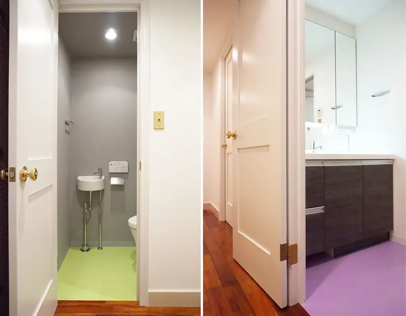 ※トイレの床はペパーミント、洗面室の床はパープル。