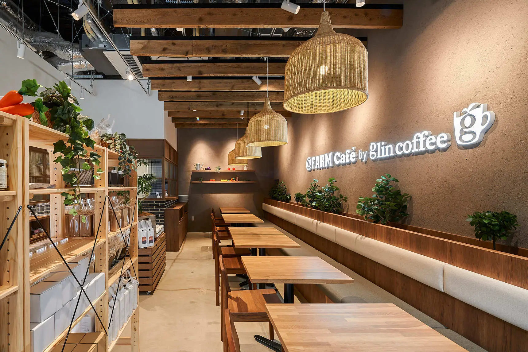 2022年10月にオープンした、ふかや花園プレミアムアウトレット内「@FARM Cafe by glin coffee」店の設計・施工を担当しました。