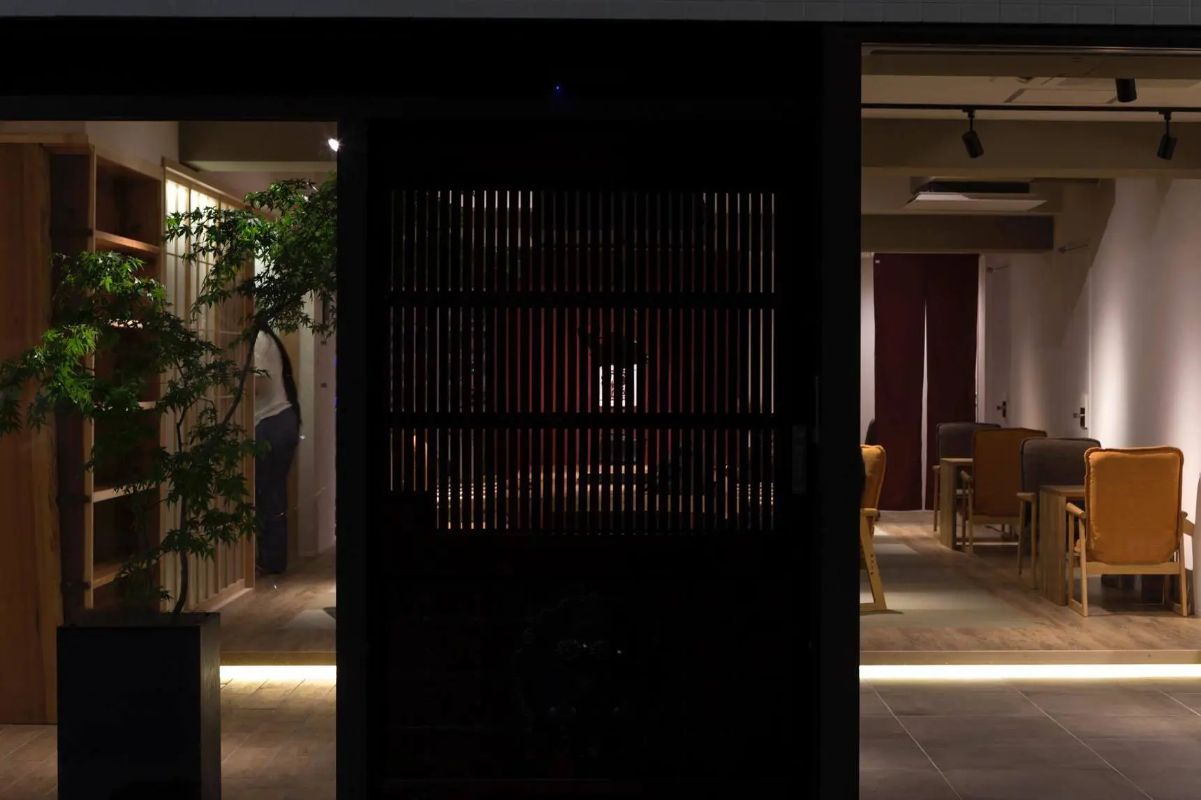 また、ラウンジにはアクセントとなる大きなのれんと、光る障子があります。