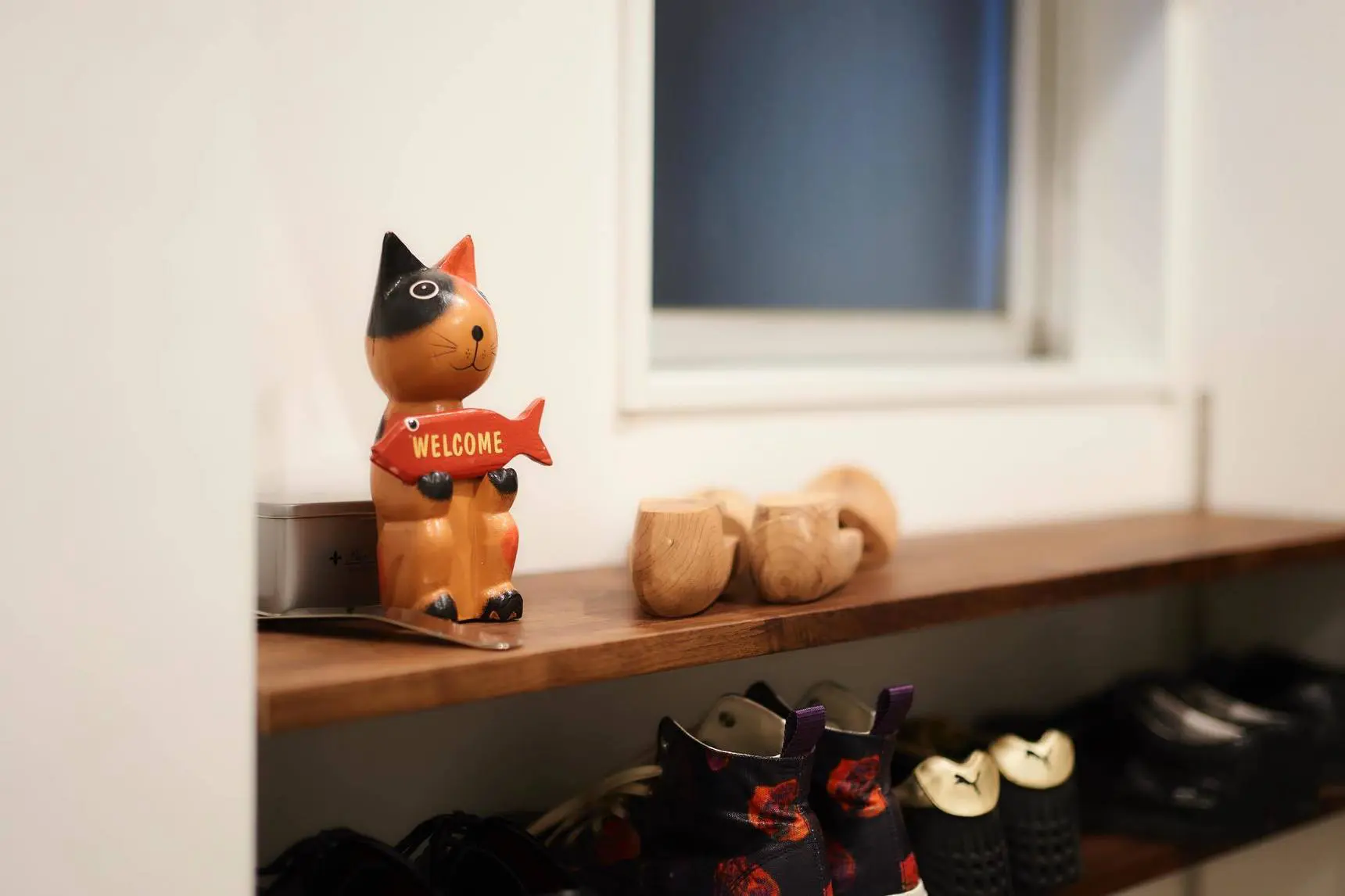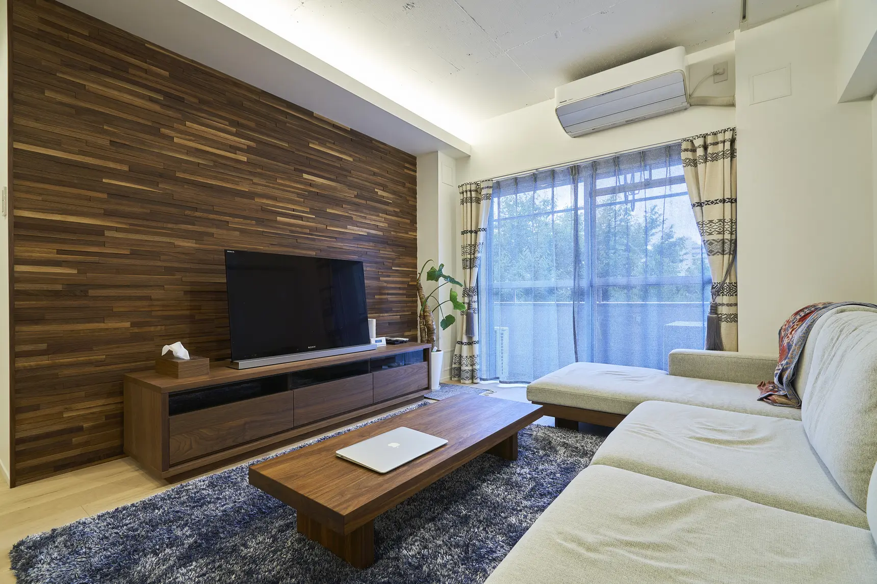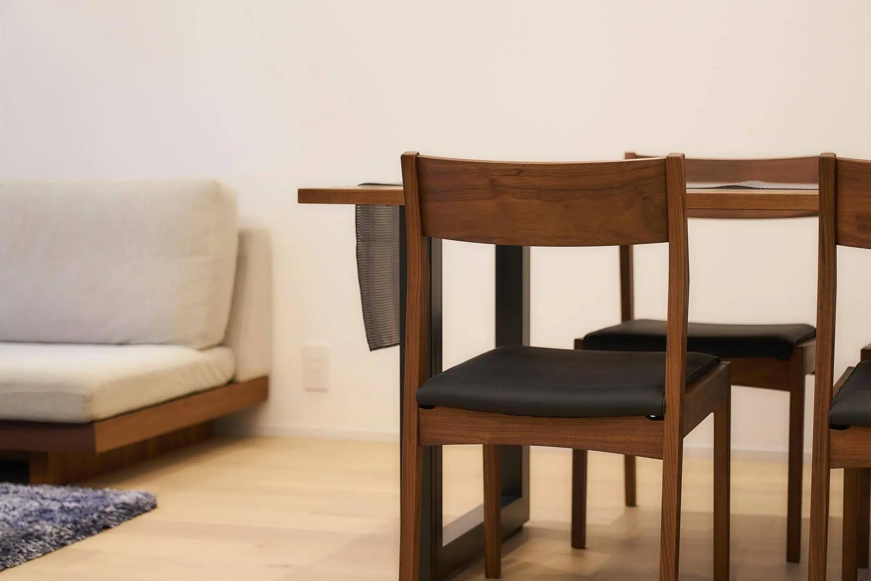 「白く・明るく・シンプル」な内装をベースに家具と同じウォールナット材をアクセントに。