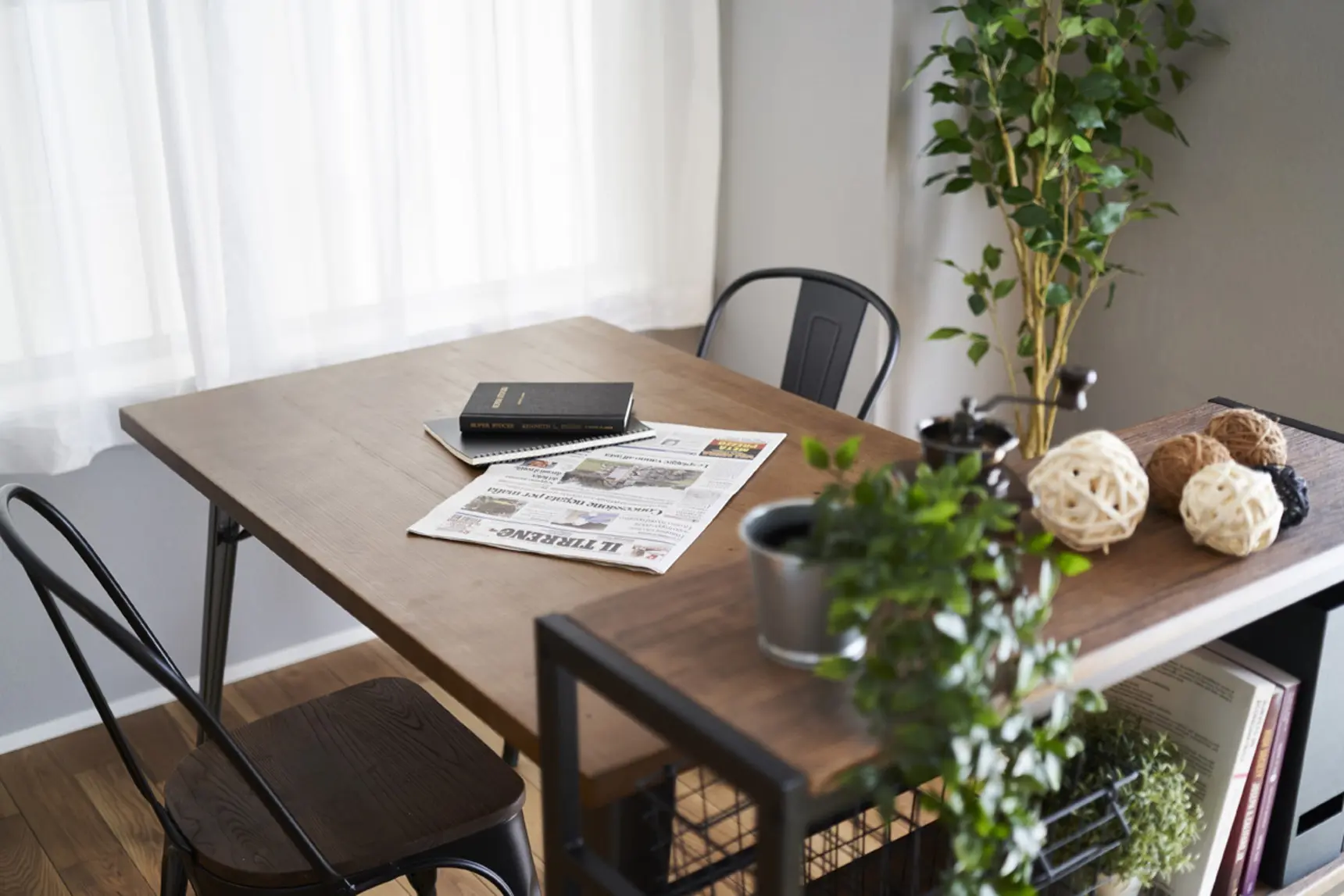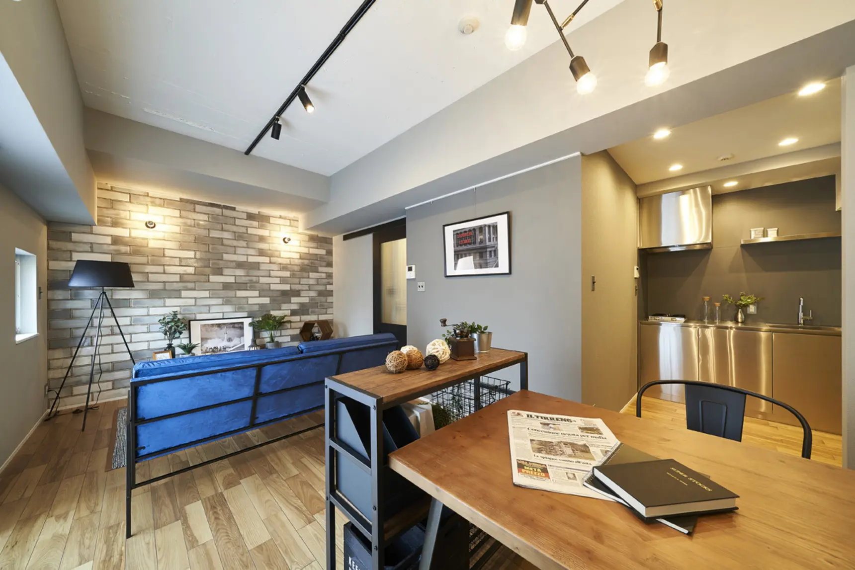 ターゲットは男性の単身者、ダイニングテーブルを打合せや仕事場としても使えるように家具でリビング空間との見切りをつくりました。